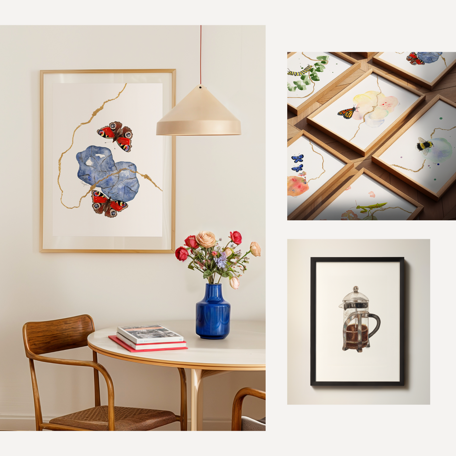 Leslee's art often suits lovers of eclectic, vintage, scandi or mid-century modern aesthetic and interiors.